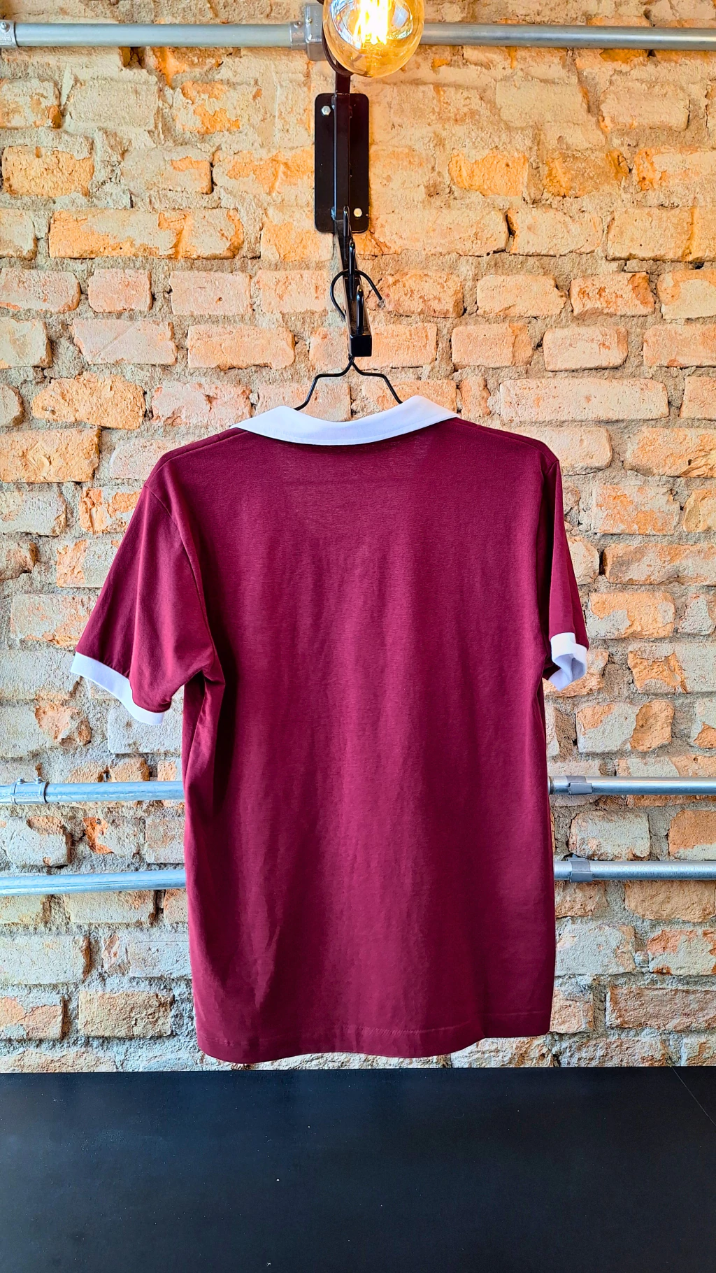 Camiseta Retrô Anos 30 Grená com cordão, escudo bordado , 100% algodão