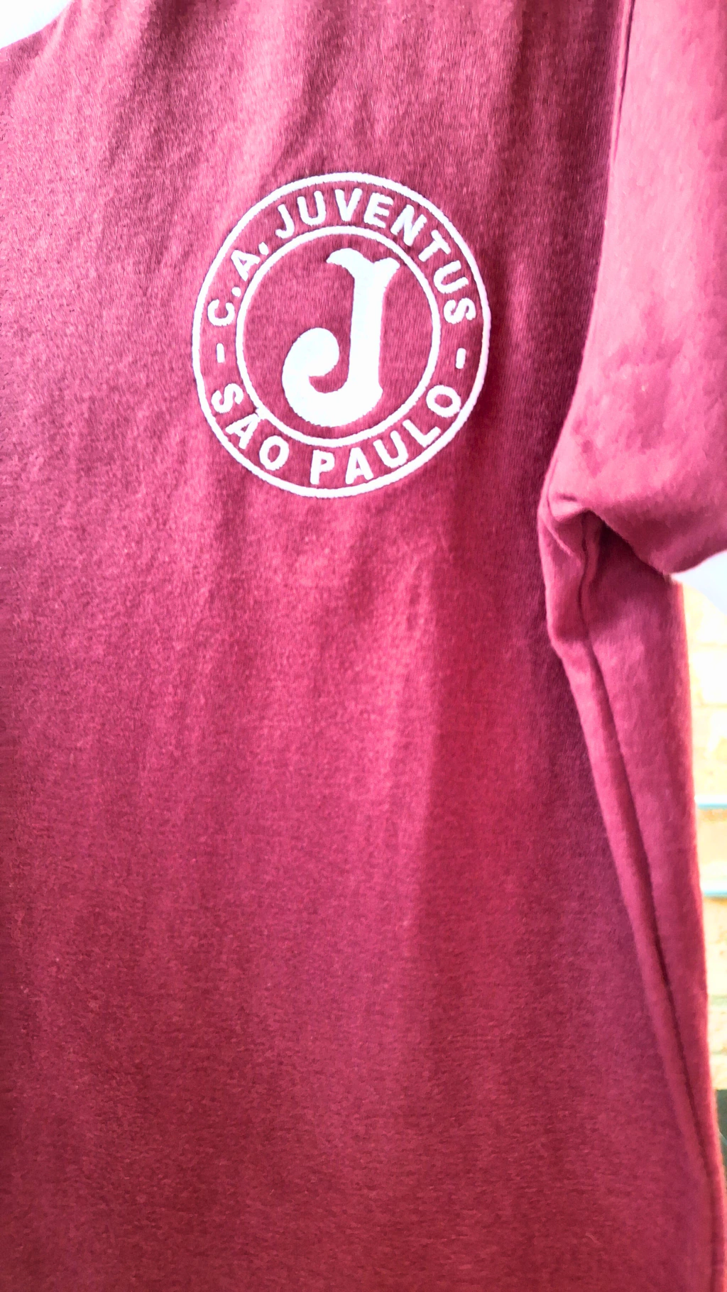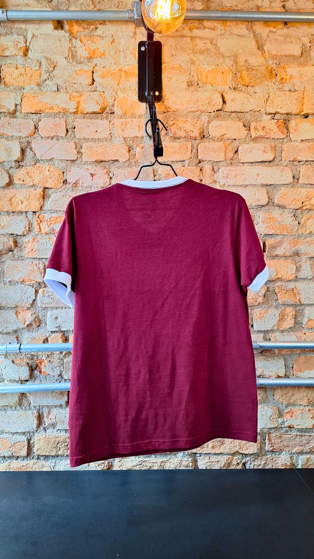 Camiseta Anos 60 Grená Retrô, Gola V Branca, 100% algodão.