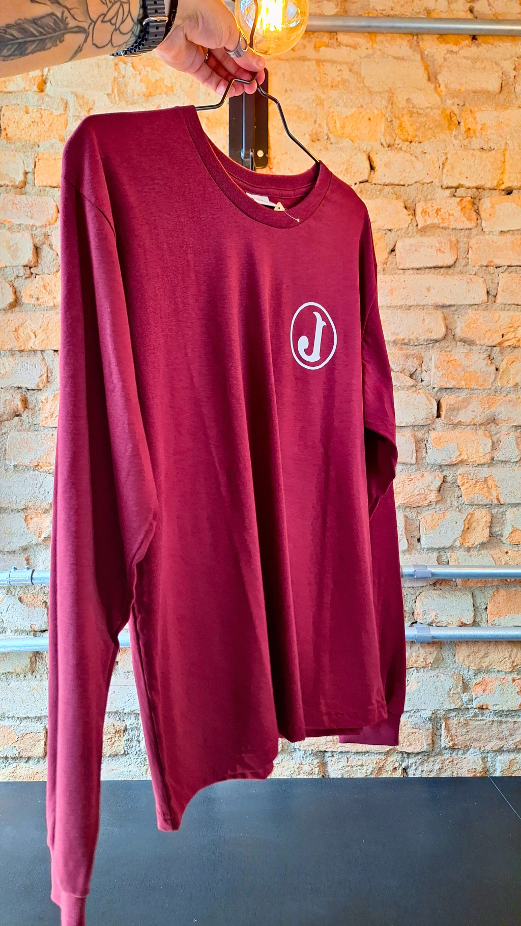 Camiseta Juventus Grená manga longa, lisa nas costas, Gola Redonda, 100% algodão.